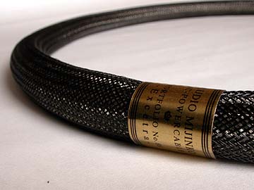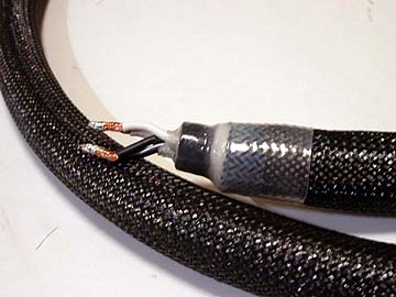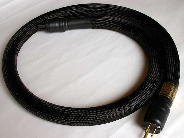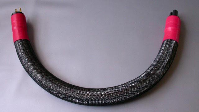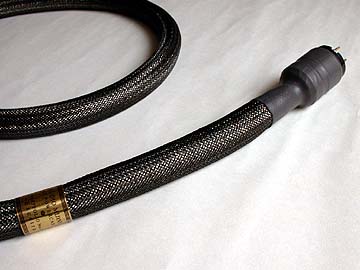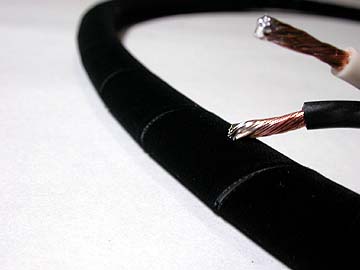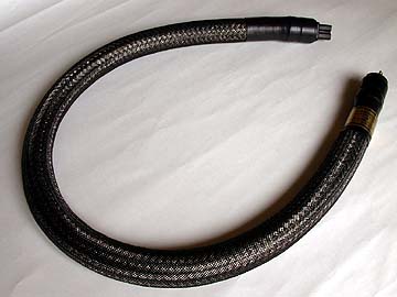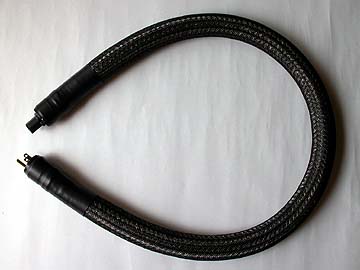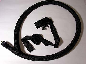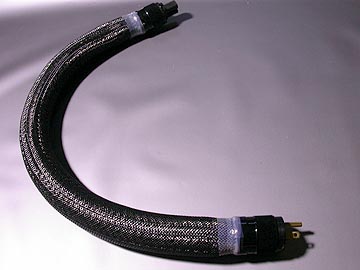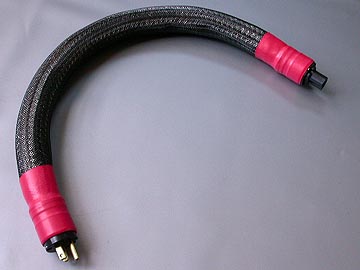 | こちらは前述のBallistaとExcetraをミックスしたような被服処理を施している。ケーブルには贅沢にもアクロリンク6N-P4030を使用。長さは約1.2m。ケーブルの外径はφ36ほど。なんと太いケーブルか。シュンヤッタリサーチかオーラルシンフォニックを彷彿とさせる。ちょっと言い過ぎかな。青ヘビならぬ黒ヘビとでも名付けたいところだが、歯がゆいのでやめておこう。2005年6月に製作。 | |