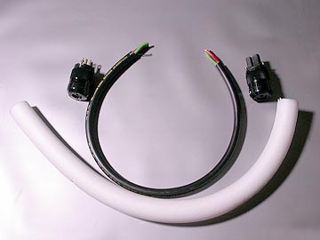 わが愛しのオーディオアクセサリー 強力防振構造極太自作電源ケーブル 2005.07.26公開 ここではみじんこ新機軸である極太電源ケーブルをご紹介。いずれのケーブルも防振対策を施した極太仕様となっている。異様な姿をとくとご覧あれ! なお、 |