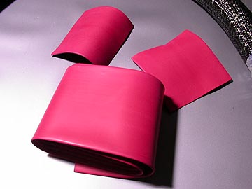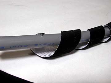 なぜ、こんなカブセールみたいな素材を使う事になったかと言うと、東急ハンズで見かけたからだ。そもそも、太いケーブルを作ろうとして、様々な仲介材を探していたところに、このカブセールを発見したわけ。自作系オーディオマニアたるもの、なにか面白い素材を見つけたとき「これはオーディオに使えるだろうか?」と考え込んでしまうもの。 |