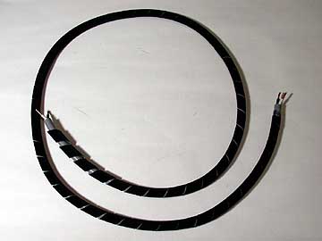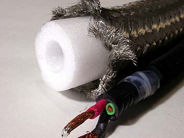 | これが材料となるケーブル。アクロリンク6N-P4030と銅平網チューブTBC、カブセール。 | |