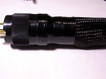 | ケーブル被服とプラグ/コネクターとはテフロンテープを何重にも巻き付けて結合させている。