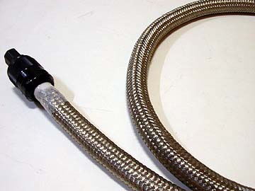 右は銅平網組メッシュチューブを被せたところ。うーん、このままでもぎらぎらメタリックでかっこいいなぁ。 |