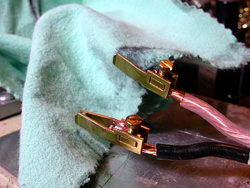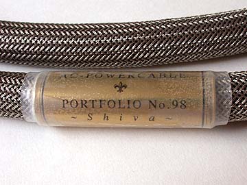 | このアルミの塊、見た目にもアクセントになって面白い。効果については後述するが、素の状態のCV_Sに比べ、位相の揃いが多少向上しているような気がする。製作ナンバーはNo98。このケーブルには“Shiva”というネーミングを与えている。シバ神はヒンズー教の神の名前であり、雷雨を起こす破壊神として知られる。CV-Sもスパッと芯の通った押しの強いケーブルで、音のエッジが立ち、パルス音等の激しい音声信号の再生において抜群の性能を発揮する。人によっては既存のケーブルとの変化の度合いに驚くこともままある。このCV-Sのイメージを破壊神に重ね合わせたわけだ。 | |