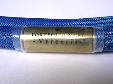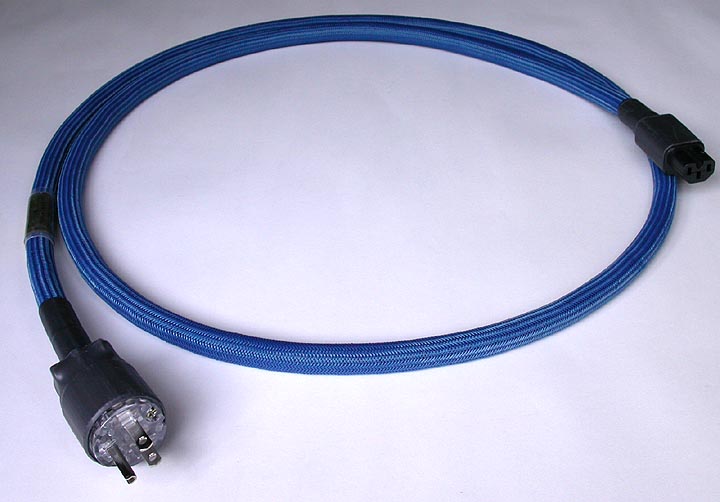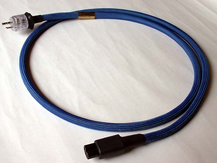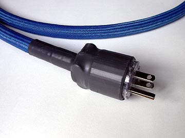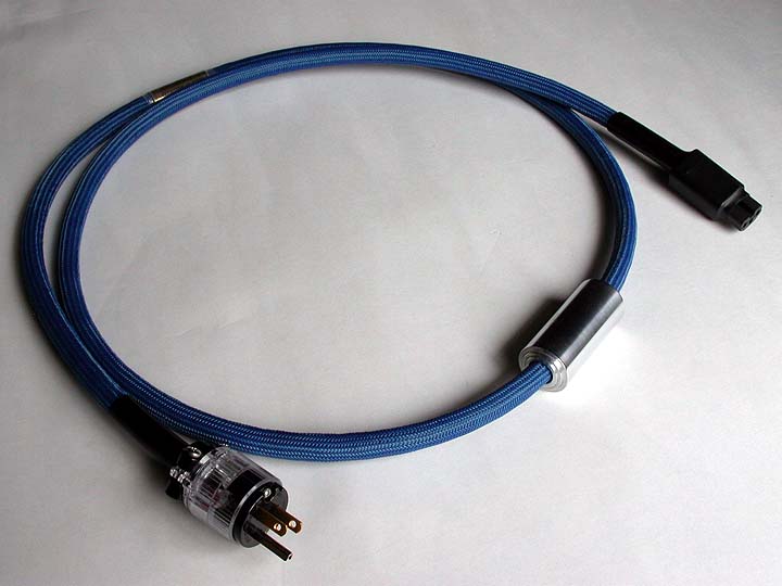 | この電源ケーブルVerberisは、比較試聴時に使用したCV-S5.5ケーブルを仕立て直したもの。シャークの青メッシュでスタイリッシュに仕上げてみた。ケーブル外径は16mmとけっこう太い。硬いのでしなりにくく、取り回しにやや苦労するが、頑丈そのもののケーブルである。導体が5.5スケアもあるので、非常にエネルギー感があり、特に低音の量感が素晴らしい。音の輪郭は中堅どころ。アンプに使ってみると、アンプのドライブ力を底から押し上げるような変化を感じさせる。バリバリと鳴るのが素性だが、意外が意外、しっとりと穏やかな一面も感じさせる。ケーブル長は2.1m。 | |