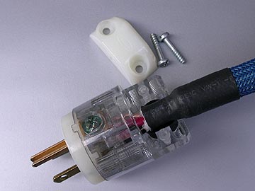 | ACプラグはマリンコ5266、IECコネクターはシェルター4781を使用。コネクターにはスミチューブB2(3×)にて全体を収縮処理している。コネクターとケーブルの接合部分にはケーブルの反発力による力が掛かりやすく、素のままだと音質にも悪影響を及ぼしかねない。この問題を解決するにはスミチューブでコネクターとケーブルの接合部を被服してやると良い。 | |