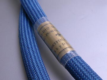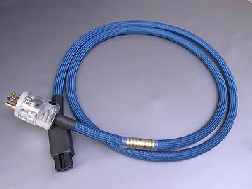 | 完成した電源ケーブル。名前はスカイダイビングとした。スカイダイビングとはブルーキュラソーを使ったカクテルの名称。ケーブルの色をカクテルに準えてみたのだ。 | |