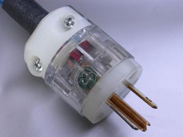 | ACプラグハッベル8215TとIECコネクターオヤイデ4781PBGの取り付け状態。スミチューブB2の3倍収縮タイプでコネクター全体を被った。シェルター4781系コネクターはケーブルの固定強度に若干の不安があるため、収縮チューブにてコネクターとケーブルの接合部分を補強してやったほうが良い。さて、スカイダイビングの音色はというと、これがしっくり私好みなのである。適度な荒さを有しつつ、馬力感のあるエネルギッシュな傾向。プラグとコネクターは暖かみのある性格。男性的なCV-Sを女性的なプラグコネクターで和らげているようで、CV-Sの刺が若干抑えられバランスが良い。現在はパワーアンプB-2103の給電に使用中。 | |