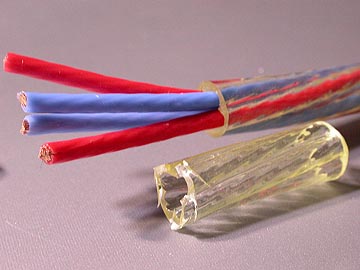 | 14-4CTは熱気と解像度が素晴らしい。¥3,000/mでメリハリ系のお勧め切り売りケーブルは何ですかと聞かれたら、私は14-4CTを筆頭に挙げる。この音色はたぶん外装ジャケットと導体自体の性格、撚り線の密度が高いことによるものと思われる。ポリエチレン製外装ジャケットはご覧の通り透明で、内部の新鮮が透けて見える。 | |