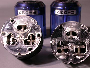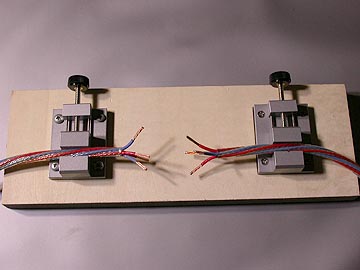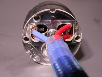 | ケーブルの加工が済んだら、次はプラグ/コネクターの装着だ。今回始めて気づいたのだが、P-037とC-037ではケーブル固定金具の向きが90度違う。これはプラグとコネクターのブレードの構造上そうなっているのであって、作業上特に問題があるわけではない。P-037・C-037のケーブル挿入口は大きく間取りされているので、太いケーブルや2芯同時差し込みがしやすい。 | |