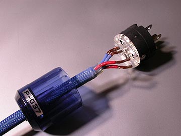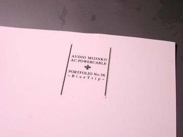 | ACプラグには明工社のME2591、IECコネクターにはシェルター4781を使用。両者とも安い電工用パーツだが、そこそこイケる。ME2591は取り付け作業が楽なのがいい。メーカー製完成品ケーブルにも良く使われている。ケーブルには前述の通り、S/ALABのHHS(ハイエンドホースS)を使用。名称はNo.55 SkyFishとした。カラーメッシュの色から海を連想、HHSの爽やかな音色からトビウオをイメージした。 | |