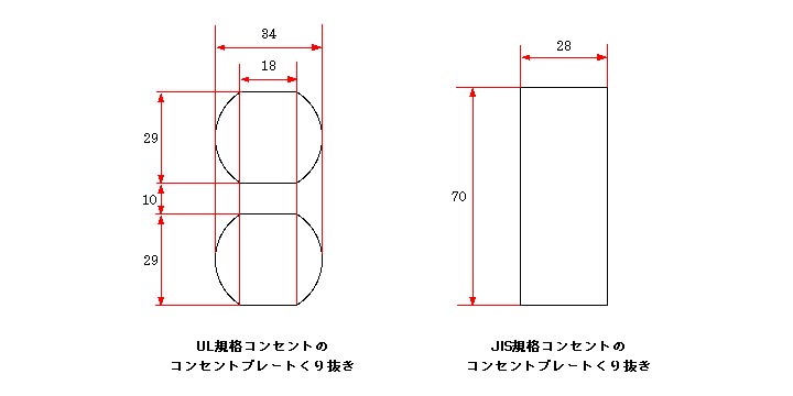 私のラックにぴったり取り付けられる縦長コンセントプレートには5mm厚のアルミ板を用いることにした。ただ、5mm厚ともなるとくり貫きが大変。手作業でUL規格のような曲線と直線が入り混じった穴を切り抜くのは難しい。ボール盤と金ヤスリを使って丹念にカットしていけばやれなくもないのだが、完璧な精度でおこなうのは不可能に近い。もし、くり貫きの位置が少しでもずれてしまうと、UL規格コンセントが取り付けられなくなってしまう。となると、直線の構成でくり貫く方がやりやすい。JIS規格コンセントであれば直線の構成で長方形状にくり貫けばいいから、なんとかなるだろう。とはいっても、5mm厚もの金属くり貫き加工を私の手持ちの工具でおこなうのは難しい。それなりの工具を所有する専門業者に委託するほうがいい。そういうわけで、材料の調達とくり貫き加工を東急ハンズ新宿店に委託した。 加工を委託する際、ハンズの方からは、高精度のカットは期待しないで下さいと念を押されていた。だから、加工精度に関しては、さほど期待していなかった。待つこと数日。くり貫きカットされたコンセントプレートを受け取りに行き、その場で確認させてもらったところ、確かに高精度とは言いがたかった。東急ハンズにレーザーカット装置やNC旋盤はないので、くり貫き加工は電動糸鋸による手作業でおこなっているのだ。だから、完璧な直線切抜きが出来ておらず、切抜き穴が歪んでいる。文句を言っても仕方ない。コンセントプレートを持ち帰ってコンセントを嵌めてみる。うううっ、入らない。仕方なく、コンセントが入るように穴をヤスリで整形した。そんなこんなの苦労の末、なんとかオーディオラック内蔵型5mm厚アルミプレート電源ボックスは完成した。この時、思ったのだ。今度、金属のくり貫きをやる時があれば、高精度なカットができる専門業者に依頼しようと。 【経緯その2:UL規格コンセント対応ステンレスプレート製ラック内臓電源ボックスの製作】 JIS規格コンセント(WN1318×3個)を搭載したオーディオラック内臓電源ボックスが完成して1年余り。松下のWN1318が悪いと言うわけではないのだが、音質的に魅力的なコンセントとなると、やはりUL規格コンセントを選びたくなる。仕方なく、外付け型のULコンセント搭載型電源ボックスを製作し、そこからピュアオーディオ機器に電源供給したりしていた。ただ、せっかくラック内蔵型というアイデアを実現できたのに、そこの電源供給ポートを使わないのではもったいない。であれば、ラック内臓電源ボックスをUL規格コンセントが搭載できるタイプに作り直すしかない。そんなわけで、ラック内蔵電源ボックス専用のUL規格コンセント対応コンセントプレートを新規製作することにした。