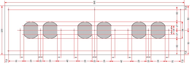 | 電源供給個口を6個口にしたのは、このくらいあった方が何かと便利だからである。最近は、ピュアオーディオ機器にDVDプレーヤーなどAV機器を併せ持っている人が多い。そうなると、6個口くらいは欲しいところである。デジアナ分離、或いは大電力パワーアンプなどを別々の電源ボックスで給電すれば、6個口もいらないかも知れない。しかし、現実にはそうそう理想的な電源供給環境を揃えられる人は少ない。どうしても、1台の電源ボックスで全てのオーディオ機器の電力を分配せざるを得ないというパターンは多いはずだ。そうなると6個口は欲しいところだ。6個口となるとコンセント個数は3個。コンセント1個の長寸は105mmほどなので、3個を縦列配置すると330mmほど必要となる。ケース部分の板厚を鑑みると全長360mmほどの電源ボックスとなる。これらコンセントの配置間隔やケースとの兼ね合いを考慮して、電源ボックスの寸法を割り出していく。 | |||||||||||||||||||||||||||||