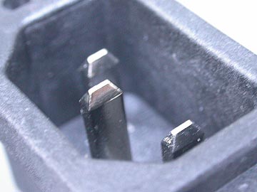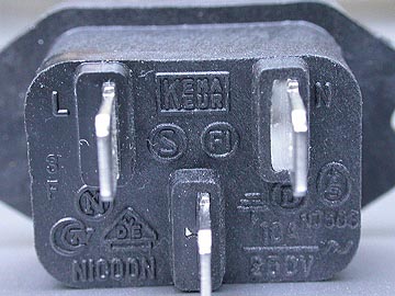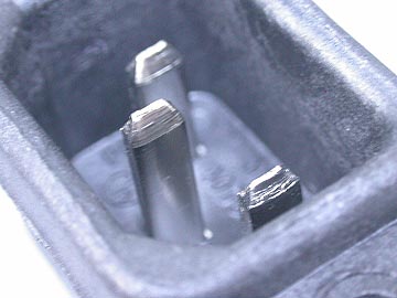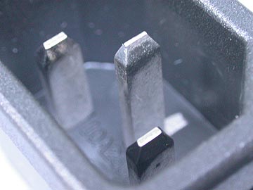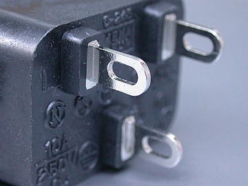 | 電極の幅は6mm弱ある。一般に入手できるIECインレットとしては最も幅が広いと思われる。この電極を見た時、これは使える!と思った。電極はニッケルメッキも綺麗だ。 | |||||||||||||||||||||||||||||||||||||