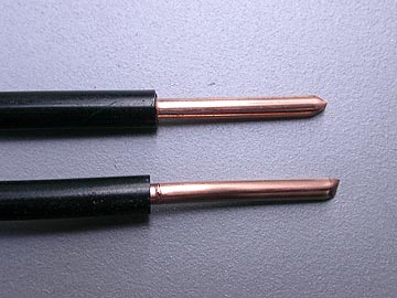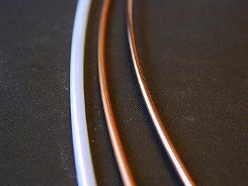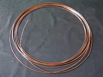 | もう1台にはオヤイデ電気が発売しているPCOCC1.6を使用。古河電工製だ。\1,000/5m巻。絶縁されていない裸線状態で売られている。よって、絶縁被服は別途必要。PCOCCはPure Copper by Ohno Continuous Castingprocessの略で、大野博士が確立された銅の鋳造引き出し方法を指す。そう、PCOCCのOは大野博士のOなのだ。日本語訳は「単結晶状高純度無酸素銅」と言われる。PCOCCで作られた銅線をPCOCC線と呼ぶ。PCOCCも無酸素銅なのでOFCの一種と言える。純度的には4N程度と思われるが詳細は不明。PCOCCはかなり硬い。この硬さが単結晶銅の特徴らしい。同じ銅なのに鋳造引き出し方法が違うだけで、こんなにも性質が変わるのかとびっくりする。PCOCCの撚り線はハーモニクスやオーディオテクニカが自社ケーブルに好んで使っている。台湾のネオテックや米国のMITなどもOCC線と称した線材を使っている。要はPCOCC線のことだ。さて、これら3種の単線がいかなる音質の違いを聴かせるか、興味深い実験になりそうだ。 欲を言えば、ビンテージ単線やアコリバ6N楕円単線、純銀線、オーグライン、ドイツ軟銅線、撚り線などをも加えて実験したかったのだが、かなりコストが掛かる実験になるので、今回は省略。