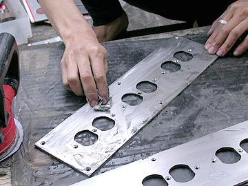【プレートの穴開け及び研摩作業】 ここからはステンレスプレートの加工を紹介する。 |