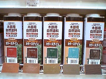 | 塗装にはサンデーペイントのエコウッドカラーステインを使用。色はブラック/ブルー/グリーン/ウォルナット/マホガニー/チーク/ホワイト/艶有りクリアー/艶消しクリアーがある。ケースの塗装にはブラックを使用している。エコウッドカラーステインは1L缶で実売\2,887と少々高めのステインだが、発色が良いので気に入っている。購入先は東急ハンズ新宿店。渋谷店には置いてない。塗料もしかりだが、ステインもメーカーによって使用感が様々。ステインとは防錆/耐蝕性を有する木部着色剤のこと。塗料と違って、木に浸透していくので、木目を生かした着色仕上げができる。自分が表現したいと思うような色と質感を出せるまで、私は色々なステインを試してきた。現在はエコウッドがお気に入りのステインだ。エコウッドカラーステインはヒバ油・密鑞・ラック鑞といった天然系溶剤を使用している。油性特有のシンナー臭がないので、近所に気兼ねせず使うことができる。効果や使用法は油性ステインと同様で、屋内外に使用できる。欠点はオイルステインに比べて乾燥が遅いこと。エコウッドカラーステインの説明書きには指触乾燥に6〜7時間、半硬化乾燥に約20時間とあり、実際そのくらいかかる。重ね塗りには塗布から6時間程度待つ必要がある。使いにくい点がもう一つ。手に付いたら落としにくいことだ。オイルステインなら、油性うすめ液を使えば簡単綺麗に落とせる。しかし、エコウッドカラーステインは油性うすめ液で落とせるものの、指の隙間などに染み込んだものまではなかなか取れにくい。手が汚れるのを心配されるなら、ゴム手袋をしたほうがいい。なお、エコウッドには専用うすめ液が存在するのだが、私は原液のまま塗布するので、専用うすめ液を使ったことは無い。 | |||||||||||||