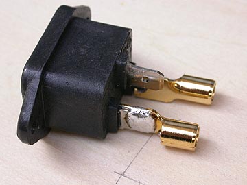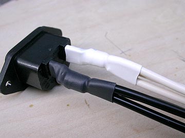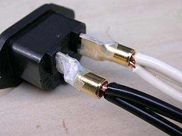 | インレットへのハンダ付けが終わったら、導通部分の絶縁行程に入る。フルテックのインレットを例に説明していこう。 | |||||||||||||
