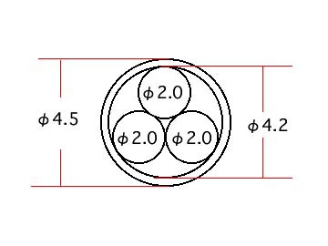 | 左上の写真を見ても分かる通り、IECインレットの内部電極は小さい。幅4mmほどだ。これは細めの撚り線を1本だけハンダ付けすることを前提としているためだろう。また、フルテックとIeGO社の一部の製品を除き、IECインレットの多くはハンダ付けによる配線を想定している。こんな小さな端子にφ2.0単線を3本もハンダ付けするのは至難の業。たしかに、インレット内部電極から複数本分岐配線するなんてメーカーは想定していないから致し方ない。内部電極へ3本の2.0単線をいきなりハンダ付けしてしまおうとすればできなくはない。しかし、この作業自体かなり難しく、長期的な固定強度にも不安が残る。そんなわけで、3本のφ2.0単線をインレット内部電極へ確実にハンダ付けするには、裸圧着端子もしくは裸圧着スリーブを仲介させた方が無難。ただし、音質劣化を招きそうなスリーブは避けなければならない。となると、スリーブの材質は非磁性体である真鍮か銅が望ましい。右上の図をご覧いただくと分かる通り、φ2.0単線を3本束ねるとその最大径はφ4.2となる。スリーブの内径はφ4.2以上必要だ。さて、私の圧着端子探しの旅が始まる。 | |||||||||||||