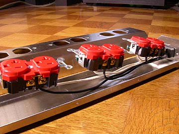 | 組み立て終えたMT-US+Leviton5362R電源ボックスのアップ。いとも簡単に、念願のUL規格6個口電源ボックスが出来上がった。で、出来上がったこの電源ボックスは現在、液晶テレビやビデオデッキ、DVDレコーダーなど、みじんこオーディオシステムのサブ電源ボックスとして活躍中。ちょっともったいなっけど。
