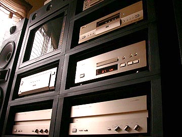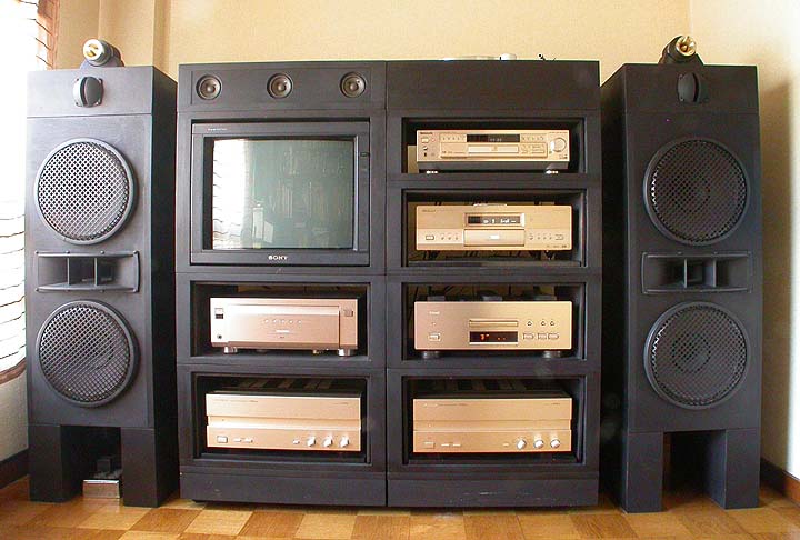 | ついでに2005年5月時点のオーディオシステムもご紹介しておこう。これが従来のオーディオみじんこシステムの最終形態となった。厳密に言うと、本当の最終形態ではDVDレコーダーがDMR-E10からRD-X1に変更してあるのだが、その時の状態は写真に収め損ねた。 | |