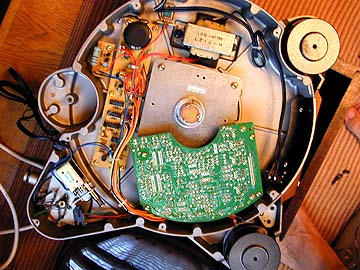 KP-07Mの底面カバーを外す。背面。内部回路はご覧の通り配線が複雑に入り組んでいる。