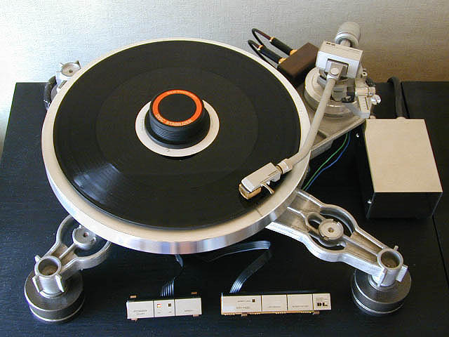 | 2001年にKP-07Mを入手してから、私のレコード熱が始まった。次なるレコードプレーヤーを物色していたら、故長岡鉄男先生の記事に「ケンウッドのKP-1100はX字をしたフレームに全てのパーツが取り付けられているので、キャビネット無しで使える」とあった。有名サイト「オーディオ懐古録」を見るとKP-1100のX字フレームの美しい写真(商品パンフレットの写真抜粋)が掲載されていた。その甘美な姿を見た瞬間、KP-1100をキャビネット無しの状態で使用したい衝動に駆られた。もちろんKP-1100が優秀なレコードプレーヤーらしいと言うこともあるのだが。さらにネットで調べていくと、すでにKP-1100をスケルトン化して使っておられる方を発見!あ、この人はカメラマンでオーディオマニアの山本耕司さんではないか。(山本耕司さんはオーディオ雑誌にも良く記事を執筆されておられ、そのチャレンジ精神旺盛な記事内容がとても面白いのだ。)さすが、本業。とても綺麗な写真付きでKP-1100スケルトン化のいきさつを述べておられた。その他にも、KP-シリーズのスケルトンを何例か見つけた。マニアたるもの目の付けどころは一緒かー、と思った。んなわけで、スケルトン化を前提に、みじんこのKP-1100或いは探しが始まる。なお、後継機のKP-9010は相場が高い(\6〜7万)ので狙いから外した。 | |