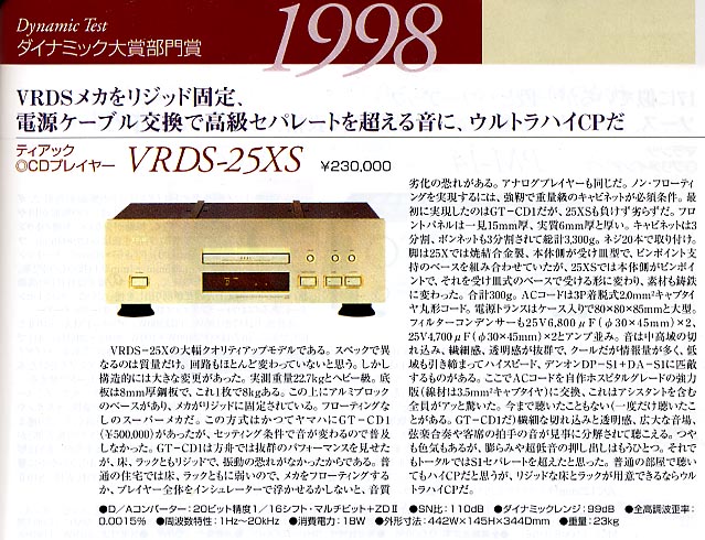 | VRDS-25xsは長岡先生が最後に御愛用したCD専用機としてあまりにも有名。長岡先生ファンの所有率が高い。私も御多分に洩れずVRDS-25xsを愛用している。今回は所有する2台のうち1台を手放します。 | |