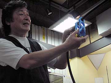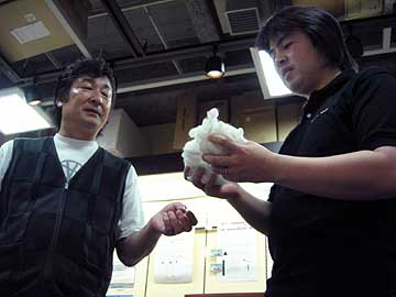 福田先生お話要約///これはシルクですね。これはどういったものですか。(石黒社長曰く、基本的にはスピーカーの吸音材として開発したものですが、帯電除去作用があるんです。プラグやインレットなどの周りに置くと音質向上します、とのこと。) オーディオアクセサリー誌の付録CD1曲目を使用。使用前に試聴し、その後、石黒社長が機器背面のプラグやインレット周りにPSA-100を配置していく。どうやら巻き付けているようだ。取り付け後、試聴を再開。う!これは明確に良い方向へ変化した!音楽全体が明瞭になり、鮮度が増す。演奏者の息づかいなど細かい表情が浮き出てくる。これは今日一番の好転だと私は感じた。 福田先生評要約///効きますねー。(会場から同意の笑い声)これを知ってしまうと外せないですね。じゃ、外してもう一度聴きましょうか。/// 石黒社長がPSA-100を取り除き、再度未使用状態で試聴。 福田先生評要約///平坦で音がかすれていますね。じゃ、やっぱり付けなきゃ駄目だね。これ売ったら?(福田先生の冗談まじりの質問に、石黒社長は“売ってます”と即答。そりゃそうだ。)このシルクの綿使うと曇りがとれますね。これなに、1箱幾らなの?(石黒社長より、“\4,800です”と返答)これ必要になっちゃうね。 もう一度PSA-100をもう一度使う。 福田先生評///これは面白いですね。このシルク、このまま使うだけじゃなく、なにか自分で袋に入れてもいいでしょうね。それにしてもこれ、シルクじゃないと駄目なの?綿じゃ効果ないの?(石黒社長曰く、綿は効果ないとのこと)/// |