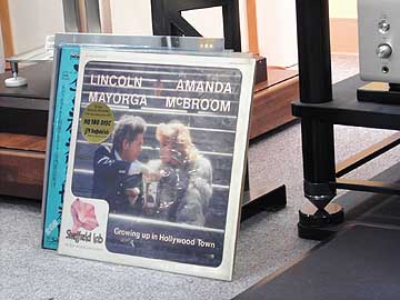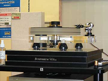 福田先生のお話要約///最近はこのレコードプレーヤーのように、海外勢を中心にターンテーブルシートレスが多いです。半端なターンテーブルシートを敷くと良くないですね。シート無しの方が良い場合の方が多いですね。さて、このスタビライザーですが、非常にしっかりとした作りです。重さは300gくらいですか、ちょうどいいくらいですね。これはどういう工夫があるんですか?(石黒社長曰く、このスタビは複合素材で、ディスクとの接触面にも独自の彫り込みがあって、これがミソなんですとのこと)/// 試聴ディスクは福田先生が持参された右上のもの。曲名は分らないが、よく耳にする曲だ。スタビライザーを載せると、使用前よりノイズ感がなくなり、極端な言い方をすればCD並みのS/N感になった。声もずいぶんと延びやかになった。確かに、効果はあるようだが、このスタビライザーはめちゃ高い。それに、スタビライザー無しの状態との比較なので、単にスタビライザーとしての効果の度合いかもしれない。厳密に言うと、他社のスタビライザーとの比較をしてみないといけない。 福田先生評要約///音のバランスが良くなりましたね。伝々/// |