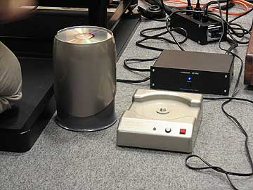 福田先生お話要約///アコースティックリバイブの名を広めたのがこのCD消磁器です。圧倒的に注文があり、何万台も売れたものです。できれば誰かCDお持ちの方いらっしゃましたら。/// 参加者の一人がクラシックCDを差し出す。聴いた曲だが、誰の曲だったかなぁ。なお、福田先生の持参ディスクは全てこれらの機器で処理済みのようだ。だから、参加者からのディスク提供を求められたのだと思われる。さて、まずは処理前の状態で試聴。大編成のクラシックなので、ちょっとスピーカーのGENIUS100が苦しそうだ。次いで、ディスクを取り出し、RIO-5とRD-2で消磁/マイナスイオン処理を施す。それぞれ数十秒の処理時間。処理後の音質変化はというと・・・うーん、微細な変化だ。福田先生がディスク提供者に変化の度合いを尋ねられたが、提供者の方は「うーん・・・」と唸るだけで明確な返答はなされなかった。雑誌やネット上で絶賛された画期的な装置だけに、私自身もっと顕著な差が出るものかと期待したのだが、これはなんとも言えないなぁ。一つに提供ディスクが比較試聴に不向きだったとか、そういうこともありえるのだが。ディスクであれば何でも効果があってよいはずだし、ディスクによる効果の相性があるのか・・・。福田先生も、ディスク提供者から芳しい返答がなかったことと、他にもディスク提供者を募ったが、手を挙げる人がいなかったこと、それにイベントの時間がオーバーしていたこともあって、この装置に関してはコメントはほとんどなされずに、イベント終了の挨拶へと突入。 |