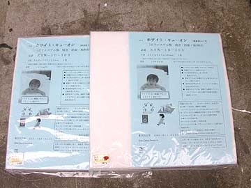 | こちらはバックキャビティ(ユニット取り付け箇所付近のエンクロージュア内部空間)に貼付ける吸音材。吸音材にも色々あるので、どれを使うか迷うところだが、今回はホワイトキューオンという吸音材を用いた。ホワイトキューオンは防音材の老舗、東京防音の発売する吸音材で、ペットボトルを原料にしたポリエステル繊維を板状に成形したもの。つまりはペットボトルを再利用したリサイクル材。同じポリエステル繊維の吸音材としてはダイニーマ繊維、オーディオ製品でいうところのミスティックホワイトがある。同じ化学成分から作られているホワイトキューオンとミスティックホワイトだが、価格と素材の質感、吸音効果などにはずいぶんと違いがあるようだ。ミスティックホワイトは興味深い吸音材だが、価格が高いので、なかなか手がだしにくい。一方、ホワイトキューオンは安価。ミスティックホワイトは強靭な繊維なので切断が容易ではないと聞くが、ホワイトキューオンはカッターや普通のハサミでサクサクと簡単に切断出来る。 | |||