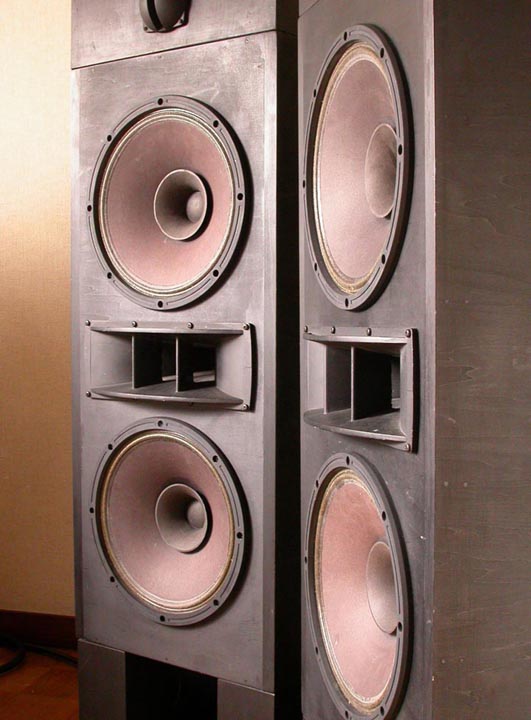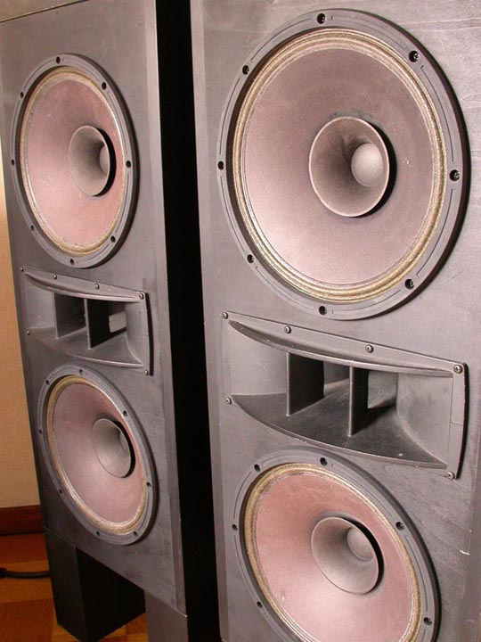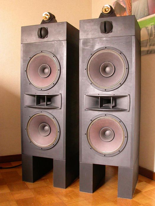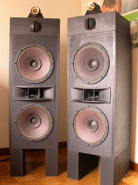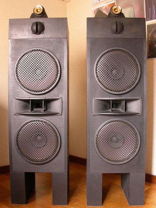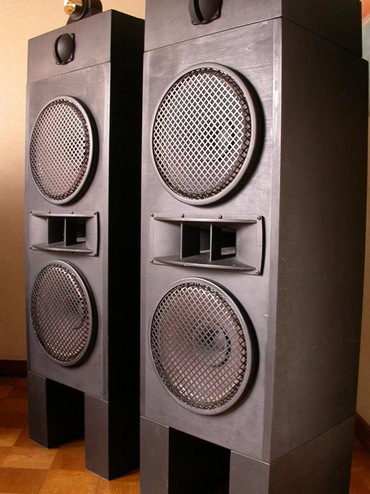 | PA-2全体像別画像。同スピーカーの自総重量は100kg/台。本体45kg、スピーカーベース15kg×2、ネットワーク20kg、スーパーツイーター部分5kg。 | |