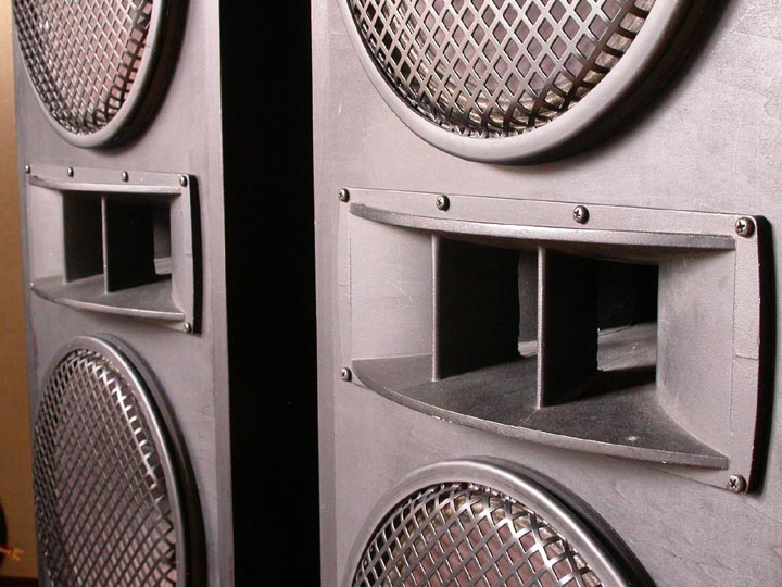| 斜め上より望む。PA-2は長岡鉄男先生の設計による大型スピーカー。これを元に、みじんこが更なる改良を加え、現在の形状となっている。オリジナルのPA-2について、長岡先生がこう書き記されている。 「壮絶、圧倒的、メーカー製のシステムでは絶対に聴けないショッキングなサウンドだ。ものすごく音離れが良く、全域にわたってスピード感がある。音波は当然音速で伝わるのだが、このスピーカーの音は、超音速というよりは超光速で飛んでくる感じがある。到達時間ゼロ。アッと思った瞬間に音はリスナーを突き抜けてはるか彼方にいってしまっている。音圧の衝撃力も大変なものだ。直径1mのフライパンでガーンとひっぱたかれる。そんな感じである。なんといってもコーンの面積が大きい。1145平方cmある。40cmウーファーの面積が880cmだから、いかに大きいかわかるだろう。しかも非常に硬いコーンである。そこでガーンと1発。到達距離も大きく、浸透力も強い。(月刊ステレオ1985年6月号 長岡鉄男先生のPA-2製作試聴記事)」 この記事を読んで、私はPA-2の製作を決断した。そして、そのコメントがはったりではなかったことを身を持って知ったのである。 |