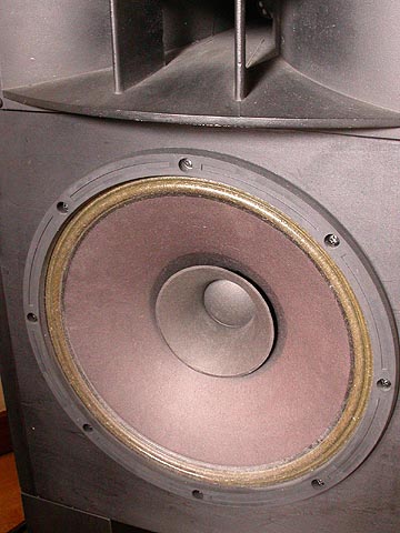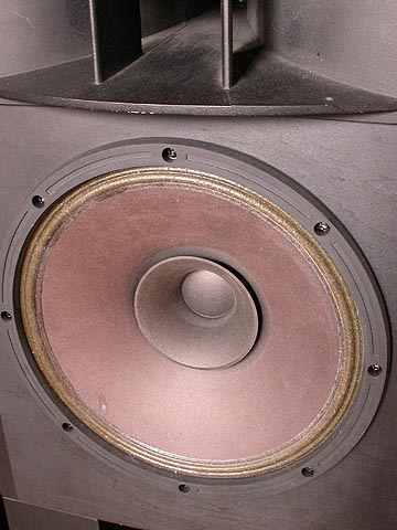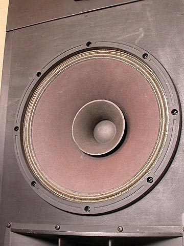 | PS300の近影。PS300のコーン紙は新品時、ダークグレーだった。ところが、年数とともに色が変化。赤茶色になってきた。これは日光による退色と思われる。屋内なので直射日光が当たるわけではないのだが、それでも影響はある。この写真は日中明るい時に撮影したので、赤茶けた感じがより強く現れている。日が陰ったところで見ると、以前と変わりないダークグレーに見える。 | |