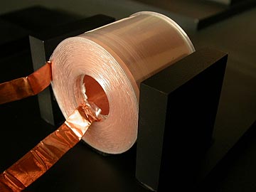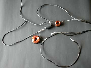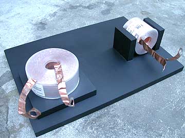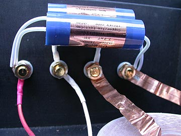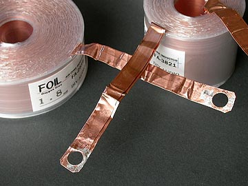 | なお、これら銅箔コイルの端末にはターミナルに通すための穴を開けてやった。どうはくコイルならではのアイデアだ。これでいざという時、簡単にコイルの交換が出来る。ハンダ付けしてしまうと、コイルの交換が容易ではないからね。 | |||||