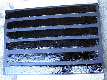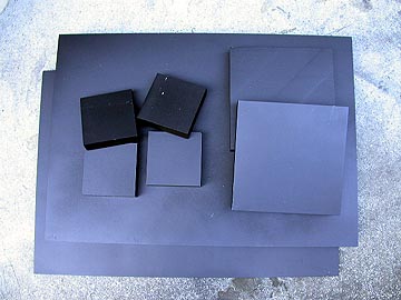 | こちらは蓋にする鉛板。TGメタルの鉛板FR-02というもので、大きさは320×360×8。重さは約10kg。寸法直しや歪み補正してから、黒く塗る。塗料はみじんこ御用達のハンズセレクトラッカースプレー艶消し黒だ。 | |||||