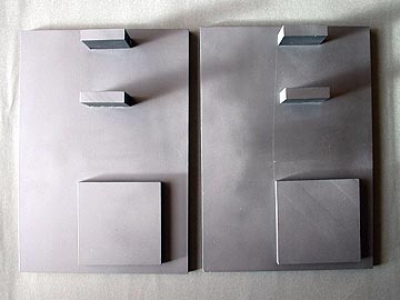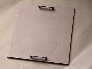 | 鉛板に取手を取り付けて蓋は完成。右はネットワークボックスに蓋をはめ込んだところ。