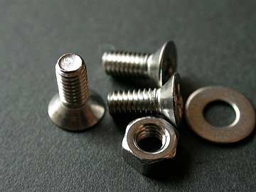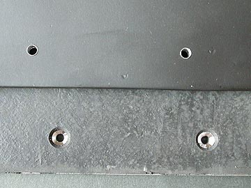 | 塗装が乾いたら、片面にブチルゴムシートを貼付けてやる。ネットワークボックスとの接触面の気密性を高めるためだ。さらには取手用の取り付け穴も開ける。右は取手取り付けに用いたM4ステンレスネジ。 | |||||