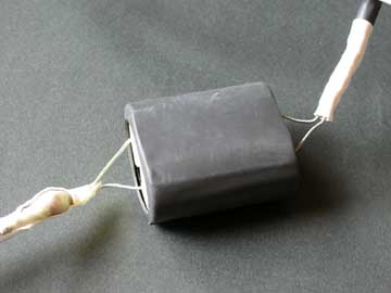 | それにしてもこのリード線、太くてとても頼もしい。φ1.2の銅単線。かつてこれほど丈夫なリード線を採用したフィルムコンデンサーがあっただろうか。重量もずっしりと重い。フォステクスの技術の粋を極めた最上級コンデンサーと言えるだろう。 | |||||