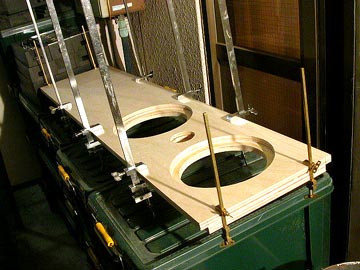 | ツイーター固定板を接着する。21mm板を3枚重ねている。 | |||