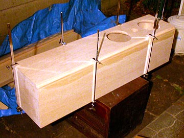 | 木工ボンドが乾いたら、今度はもう一方の側板を取り付ける。各辺が直角になるよう慎重に接着。 | |||