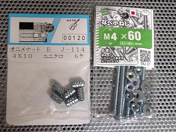 | ツイーターの固定板の加工。これは爪付きナットという金具。ミリネジを受け止める金具だ。これをツイーター固定板に埋め込む。 | |||