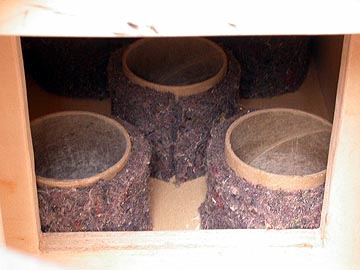 | ダクトに使用した残りのフェルトをスピーカーボックス内部に貼付ける。フェルトの使用はユニット取り付け空間の背面板のみとしている。バスレフスピーカーにしては吸音材の使用量は少ない。材料代の都合もあるのだが、できるだけ音を絞め殺さないようにしたいため、吸音材の使用を最低限にした。 | |||