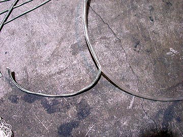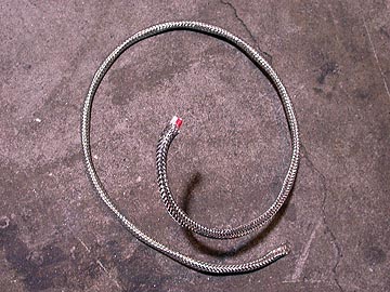 | まず、樹脂製の外装シースを剥ぐ。カッターで切り口を入れ、シースを引っ張ると簡単に外せる。右上はシースを剥いだ状態。 | |||
