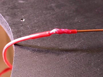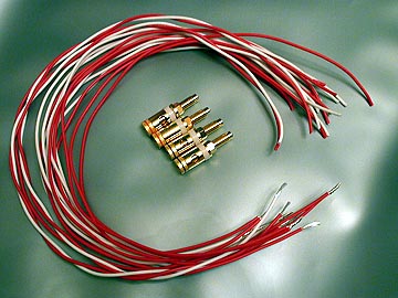 | 芯線は長さ60cmに揃えてある。赤白各10本を用意。5本を束にしターミナルに取り付ける。片側に使用するユニットは3本なのに、なぜ5本の配線材が必要なのかは後述参照。 | |||