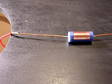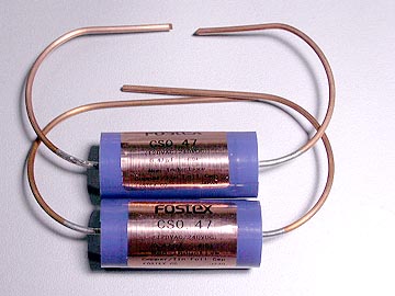 | ツイーター固定板の加工。ツイーターとの接触面に滑り止めゴムシートを貼付ける。これで、ツイーターとの密着度を増し、万が一のずり落ちを防止する。右上はツイーターに用いるコンデンサー。フォステクスのCSコンデンサー。音質劣化が極めて少なく、解像度の高いコンデンサーだ。ハイパスフィルターだ。容量は0.47マイクロF。かなり高めでのパイパスだが、FE208EΣとのつながりはこのくらいでいいだろう。0.68でも良いとは思う。 | |||