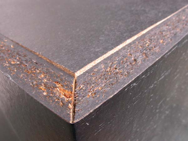 保管上の私の不注意です。雨が当たらぬよう、梱包材でくるんでいたのですが、どこかしらか雨水が入り込んでしまったようです。パーチクルボードは水分に特に弱いようです。
