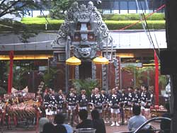 今日は芸能山城組のケチャ祭に行ってきた。今回で28回目になるらしい。場所は新宿の新宿三井ビル前の広場。天気も良いし、嫁さんと二人でのんびり観賞。観賞は無料で、多くのお客さんがあちらこちらに腰掛けて演奏に耳を傾けていた。芸能山城組の演目はバリ島の竹製の木琴「ガムラン」、同じく「ジュゴグ」という金管楽器を披露。さらには、ブルガリアの「ブルガリアン女声合唱」など様々な民族音楽を1時間毎に入れ代わり演じてくれたのだ。アニメ映画「AKIRA」で使われた曲目も演奏。下左端の写真は、「グルジア男性合唱」の光景。中の写真は、「ブルガリアン女声合唱」。会場横の階段から突然合唱が始まりびっくりした。とてものびやかな声楽に心洗われた。右は「ジュゴグ」とシンセサイザー、電子ドラムのコラボレーション演奏。芸濃山城組のオリジナル曲を演奏中。独特のリズミカルな音調に心踊る。ケチャ祭に来た記念に、会場でCDが売っていた「芸能山城組入門」というベストアルバムを購入。早速、家で聴いてみた。みじんこの好きな「わたしの亜麻畑」というロシア民謡も収録されており満足満足。そんなこんなしながらも、家に帰って電源タップのコンセント交換をこつこつと。我ながら飽きないねぇ。