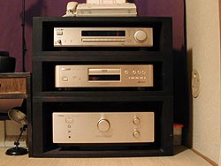 下の写真にあるように寝室にセカンドシステムを構築した。アンプAX-900、DVDプレーヤーDVD-H1000、チューナーST-S333ESA。うーん、シンプルだなぁ。しかし、肝心のスピーカーがない。いらないスピーカーは知人に譲ってしまったのだ。大きいのは置けないし。超小型自作SPを作るしかないな。ふふふ、自作心に火が付くぜ。