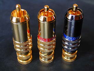 秋葉原ラジオセンター内の小沼電気で販売されているTMS製コレットチャック式RCAプラグ。写真に写っている3種のプラグは外見の色が違うだけで、構造は全く同じ。右から6105G、6104Gでともに\750/ヶ。今月から、オヤイデ電気でもこのプラグを扱い始めた。一番左のプラグは、小沼電気で特売されていた型番無し処分品で\700/ヶ。金メッキが濃いので、より美しい。みじんこはデジタルケーブルに使用した。φ8.5のケーブル口径まで対応。 | |||||||||||||||||||||||||||||||||||||||||||||||||||||||||||||||